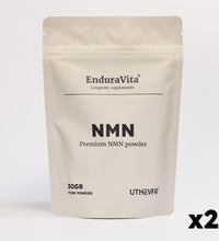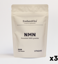 Één verpakking bevat 30 gram puur NMN poeder (Beta Nicotinamide MonoNucleotide). Één verpakking bevat voldoende NMN voor 30 tot 60 dagen gebruik.